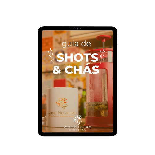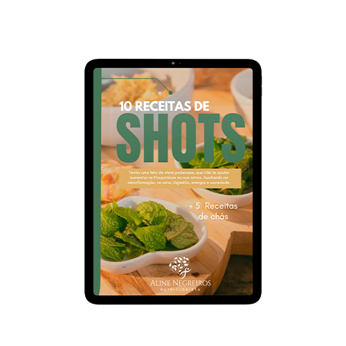 E-book com 10 receitas de shots poderosos, que vão te auxiliar no aporte de antioxidantes no seu dia a dia, sem cair na mesmice. Auxiliando na saúde intestinal, digestão, sono, energia, sistema imune, desinflamação, emagrecimento e saciedade. Mais bônus de 5 receitas de chás para potencializar a quantidade de fitoquímicos. Criado por Aline Negreiros, nutricionista, especialista em fitoterapia e nutrição funcional.