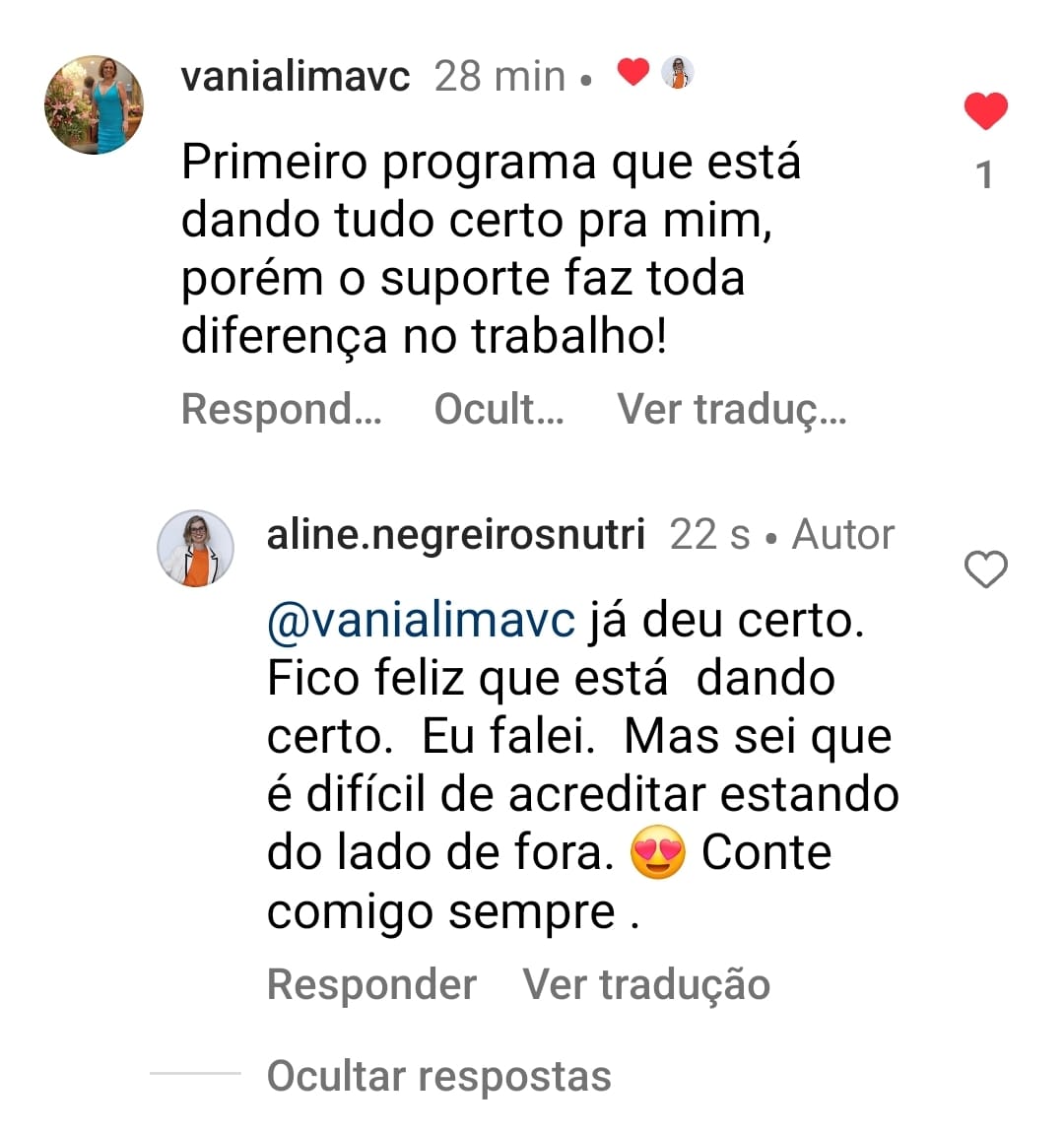 Atualmente, estou me especializando em Nutrição na saúde da mulher e Nutrição Esportiva, para poder ajudar de forma mais assertiva meu time.