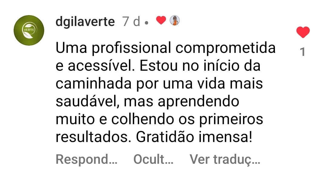 O meu coração pulsa em ajudar mulheres a transformarem suas vidas. Aumentando a auto-estima, melhorando o comportamento em relação a comida, a consciência nutricional a ficar em paz com seu corpo, aprendendo a fazer boas escolhas alimentares, comer sem culpa e assim melhorando a qualidade de vida.